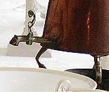 秀逸なところは、三方にコックが付いていて、テーブルの真ん中に置いて、お客が自分で好きな時に飲み物を取り出せるようになっています。