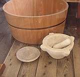 ガラス越しの写真。香料などをすり潰す大きな乳鉢です。陶器製ではなく石のようです。さらに視線を落とせば、床材も古いものを使っていますね。