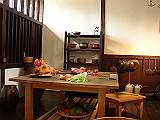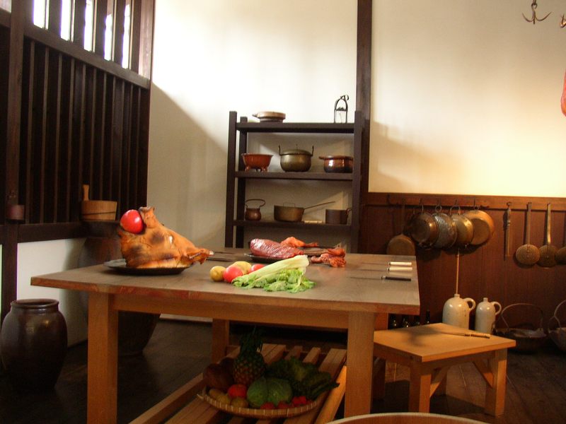 さて、どの時代を切り取って「復元」したのか。それはどの程度の正確さを期して復元されたのか。例えば、調理部屋のテーブルの上にはジャガイモの他、トマトやセロリがあります。辞典によれば日本では昭和に入ってから一般の食卓に上るようになったようです。