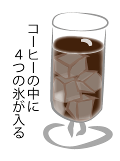 氷8個くらい(4個は熱いコーヒーに溶かし込んで冷やす。後は、グラスに入れる)