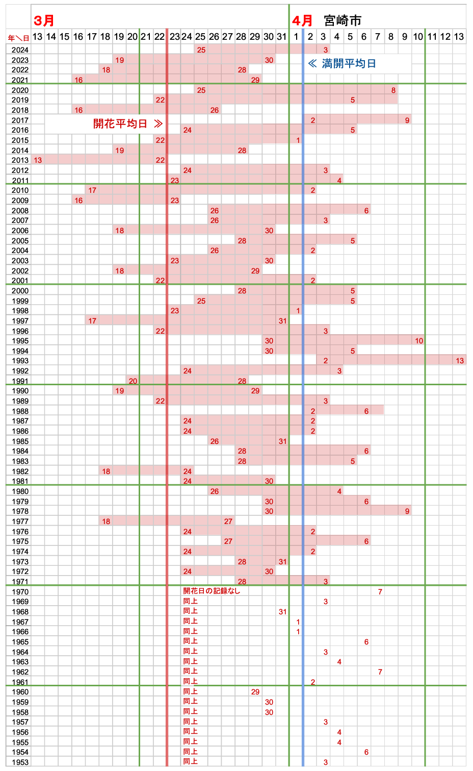 - 開花平均日・満開平均日