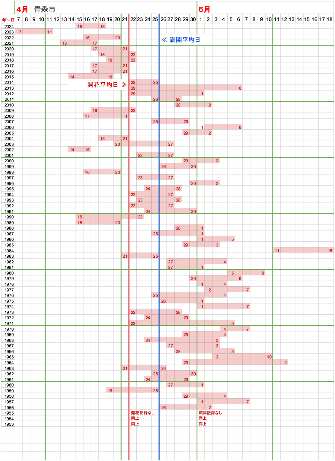 - 開花平均日・満開平均日