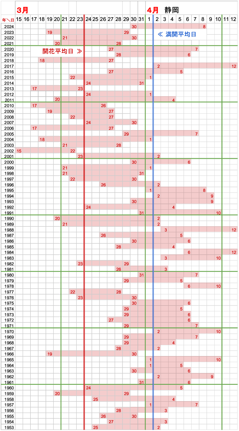 - 開花平均日・満開平均日